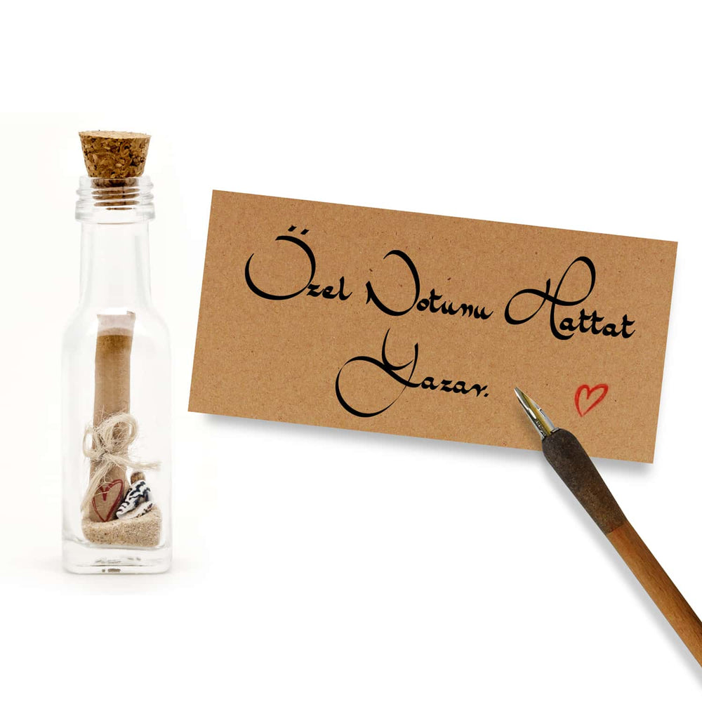 Karayip Adalarından Getirdiğimiz İnce Deniz Kumu ve Deniz Kabukları ile Hazırladığımız Şişe içerisindeki Not Konsept ile Uyumlu hediye Notunuz.